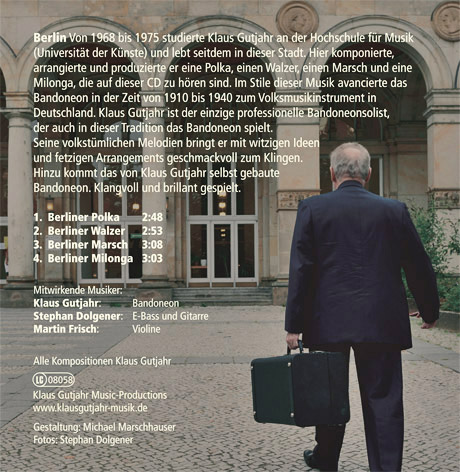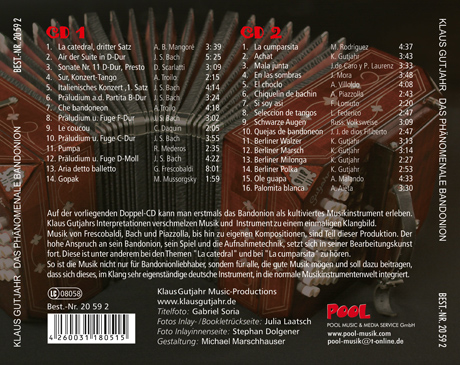 Auf der vorliegenden Doppel-CD kann man erstmals das Bandonion als kultiviertes Musikinstrument erleben. Klaus Gutjahrs Interpretationen verschmelzen Musik und Instrument zu einem einmaligen Klangbild.